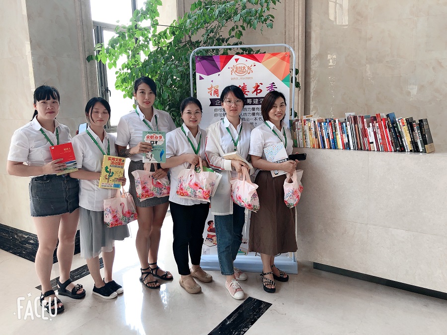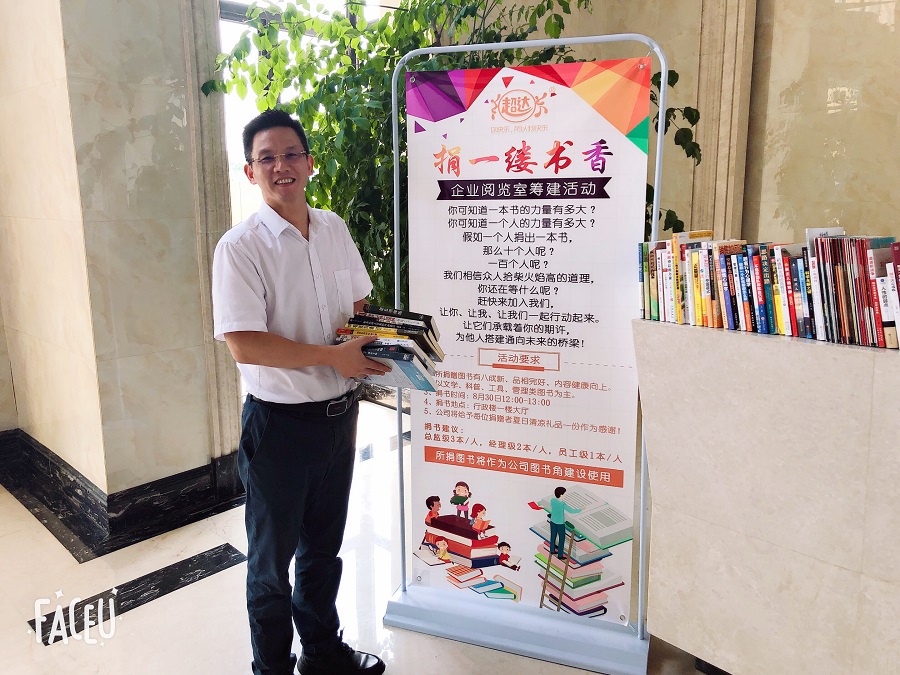 中午12点,超达小伙伴拿上自己精心准备的好书,在祝青和总经理的带领下,有秩序地排好队伍,依次进行捐书。